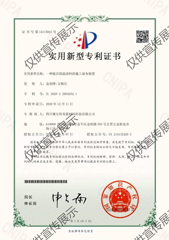 “賽爾科美”志在向全世界用戶提供最先進的綠色建材解決方案,引領低碳住宅產業(yè)化革命,用心踐行低碳環(huán)保的綠色建筑產業(yè)化理念。公司研發(fā)團隊歷時多年,成功的研發(fā)了多個綠色建筑和生態(tài)環(huán)境新材料,其中核心產品有:MFP無機硅聲能凝膠、SEK硅基物保溫系統(tǒng)、SER可變光膜等,均屬國內首創(chuàng),并獲得三十余項國家專利及《中國綠色建材三星級認證》。